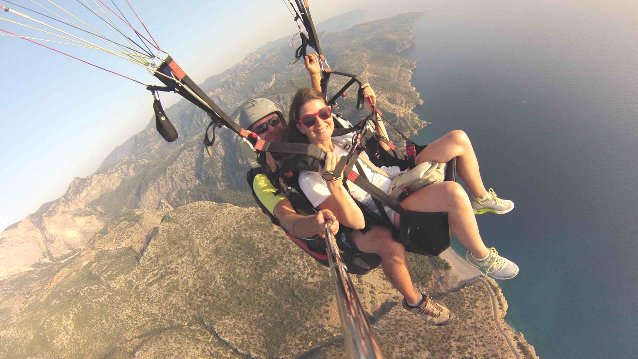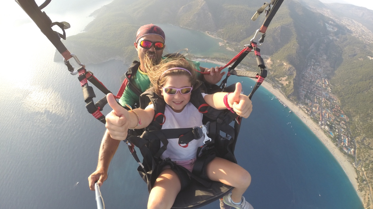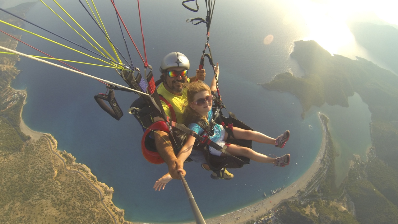 Yaz tatili için gittiğimiz Fethiye/Ölü Deniz’de yaklaşık 2000 metreden aşağı yamaç paraşütü ile kendimizi gökyüzünün kollarına bıraktık.